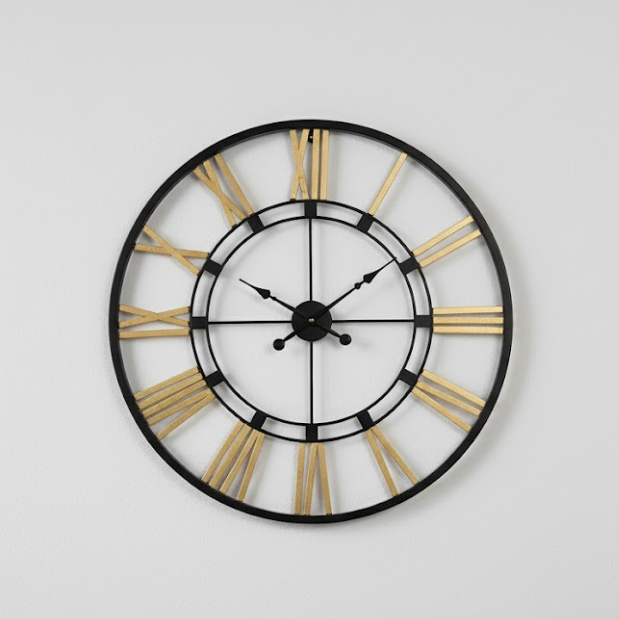 Roman Halo Open‑Frame Wall Clock – Black & Gold (24" x 24")