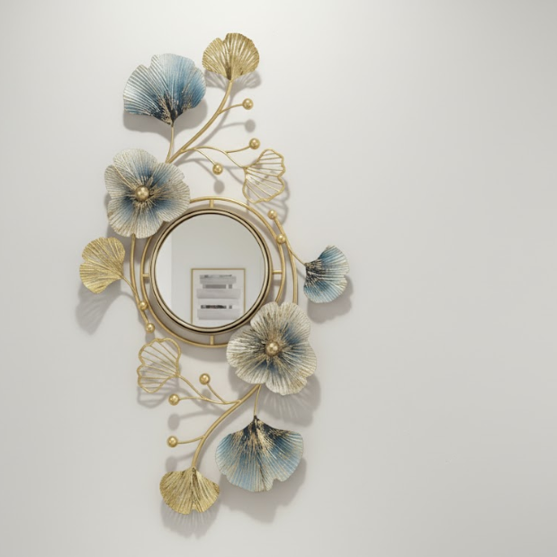 Material: Premium stainless steel frame and floral elements; high-clarity mirror glass.