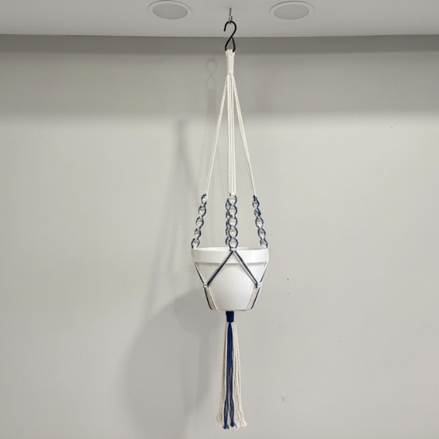 Give your space a boho-chic update with our Hanging Planters with Macramé Rope, featuring high-quality 6-inch steel pots suspended in handcrafted, intricately knotted macramé ropes. Each piece boasts a 36-inch drop for dramatic vertical displays and showcases detailed fringe, decorative knots, and vibrant accents, making it ideal for window corners, balconies, and relaxing interiors. Built for durability and charm, this collection brings artisanal detail and modern elegance to any room—each planter is easy to hang and priced at Rs. 280 per piece.