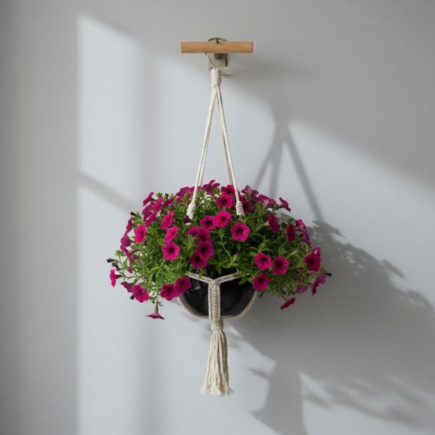 Brighten your space with the Cotton Rope Hanging Iron Planter collection, featuring premium steel pots (10 cm height, 13 cm diameter) in black or white, elegantly suspended by sturdy hand-knotted cotton rope. These sleek and modern hanging planters are strong, durable, and ideal for displaying succulents, greens, or trailing plants in windows, balconies, or indoor corners. The soft cotton rope and versatile color palette add a chic, artisanal touch to any décor, priced at Rs. 200 per piece.
