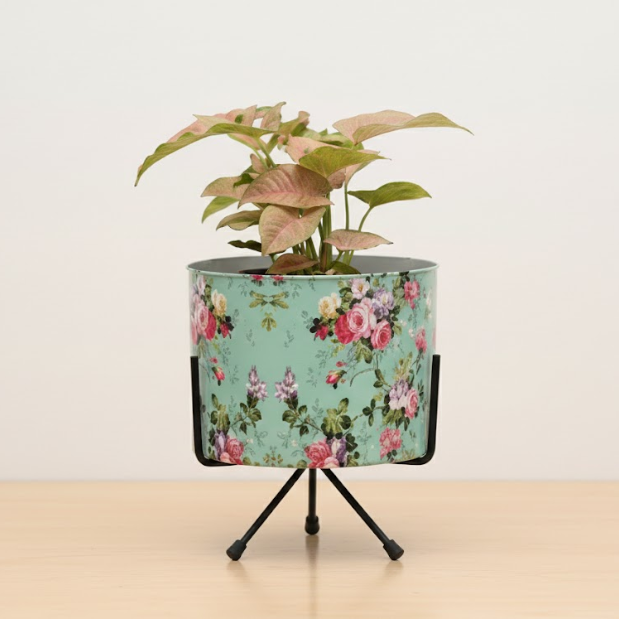 Enhance your décor with the Designer Iron Pots with Stand collection, featuring high-quality steel planters in bold, colorful patterns and floral prints. Each piece measures 16 cm in pot height and 19 cm in diameter, raised on a sturdy 9 cm metal stand for sleek elevation and easy display. These durable pots combine standout visual appeal and reliable craftsmanship—the perfect vessels for larger houseplants or statement florals in any living room, office, or patio. Priced at Rs. 340 per piece, each planter effortlessly fuses modern artistry with functional design for today’s interiors.