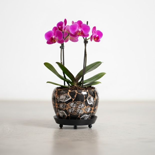 Elevate your home or office with the Designer Iron Pots with Tray collection, featuring high-quality steel pots in stylish floral, mandala, and marble prints. At 12 cm tall and 13 cm in diameter, each pot rests on a matching drip tray for convenience and mess-free watering. These planters combine vibrant design, durable construction, and ideal sizing for succulents, flowers, or indoor plants—perfect for brightening desktops, shelves, or windowsills at Rs. 200 per piece.