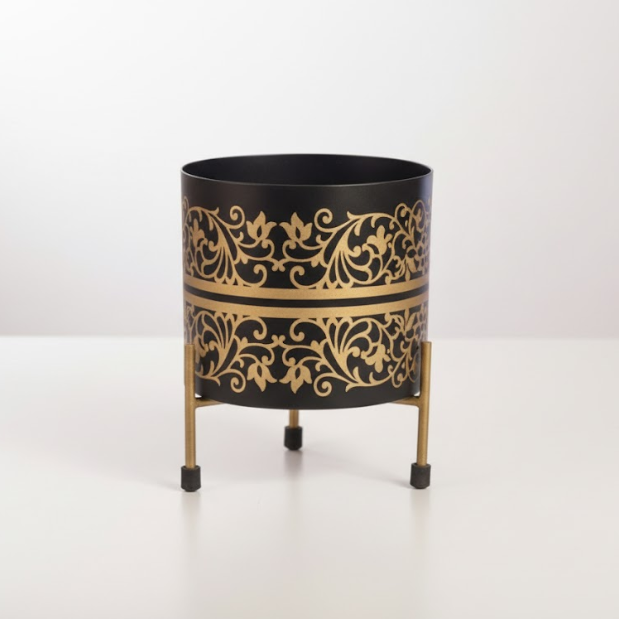 Gold Accent Iron Printed Pots with Stand