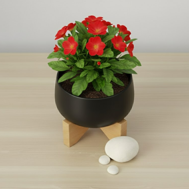 Experience modern elegance with the Black Handi Steel Planter Pot, crafted from premium quality steel for long-lasting durability. Measuring 7 cm in height and 14 cm in diameter, this pot is perfect for desks, shelves, or small accent tables. The matte black finish offers a sophisticated touch that complements contemporary decor and vibrant green plants.