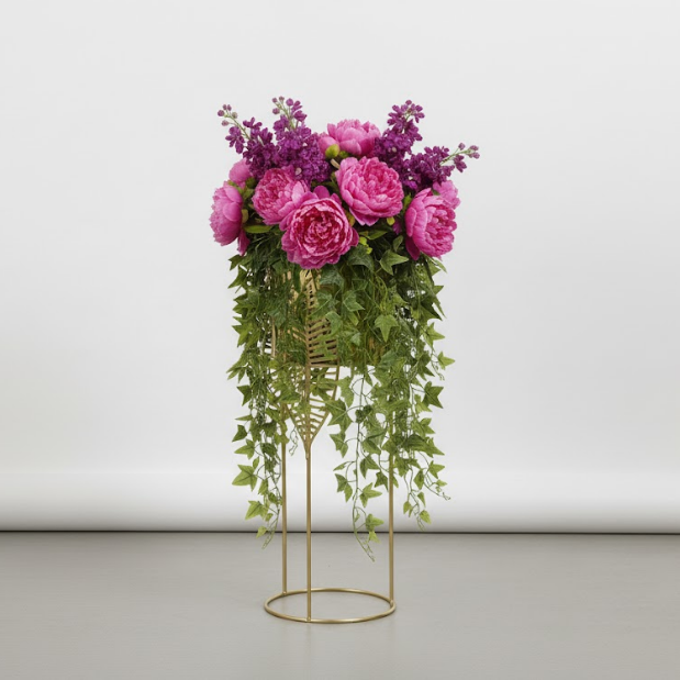 This set, "Luxury Gold Leaf Steel Planters – Set of 2," features two exquisite planters crafted from high-quality steel and finished in a sophisticated gold tone, bringing a touch of elegance to any interior or patio. Size A stands tall at 30 inches with an 8-inch diameter, while Size B measures 25 inches in height and 7 inches in diameter, allowing for stylish variation in placement and use. Both planters are supported by unique leaf-patterned stands that add artistic flair and stability, making them perfect for displaying indoor plants, leafy greens, or ornamental arrangements. The durable construction ensures longevity and resistance to rust, maintaining their glossy look over time. these planters effortlessly blend contemporary luxury with nature-inspired design, making them an ideal choice for upscale garden décor.