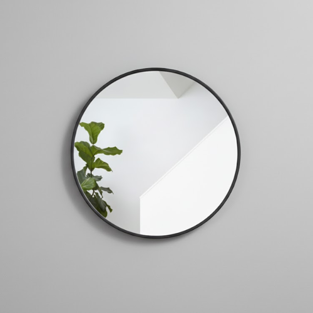 A clean, slim black bezel frames a crystal-clear round mirror for a minimalist look that elevates entryways, bathrooms, and bedroom vanities with effortless style. The low-profile rim sits close to the wall to create a refined shadow line and pairs seamlessly with modern or industrial decor.