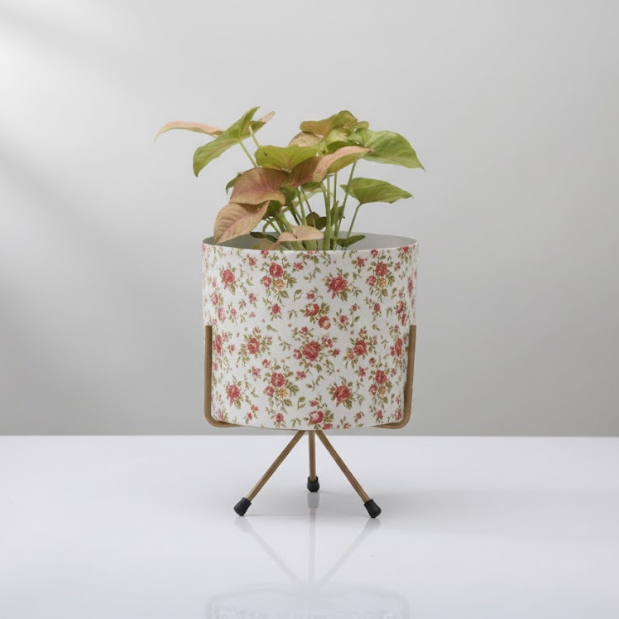 Bring modern artistry and bold personality to your indoor garden with the Iron Pot With Stand collection. Each high-quality steel pot stands 16 cm tall with a 19 cm diameter, elegantly raised on a 9 cm sturdy tripod stand for visual impact and stability. With vibrant floral, abstract, and script designs, these planters offer durability and contemporary design—perfect for medium to large plants on tables, shelves, or patios. Each pot is a standout piece for stylish décor, priced at Rs. 340 per piece.