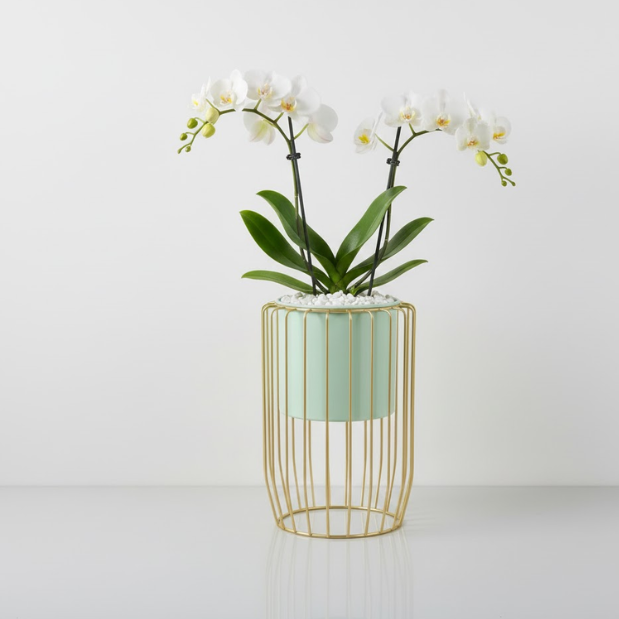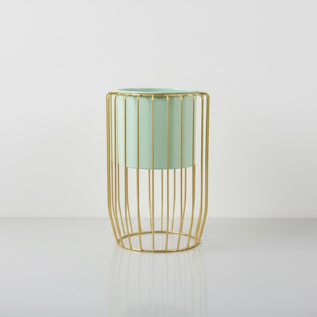 The Pearl Mist Steel Planter showcases a soft pearl-toned inner steel pot set within an elegant golden cage. Its high-quality steel construction provides lasting durability and shine. With a 48 cm height and 24 cm diameter, this planter brings a refreshing touch to contemporary living areas or outdoor settings. The gentle color scheme complements minimalist and Scandinavian design themes beautifully.