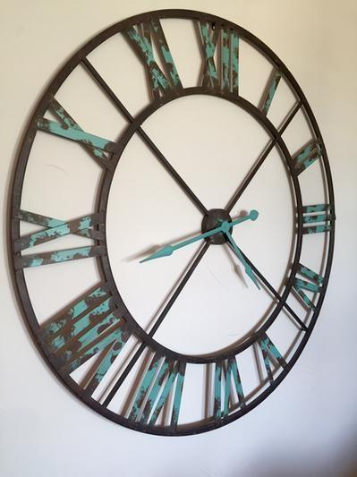 This black and green Roman Halo Open-Frame Clock features a striking color palette on a 24" x 24" open-frame design with bold Roman numerals. Silent quartz movement powers this modern classic.