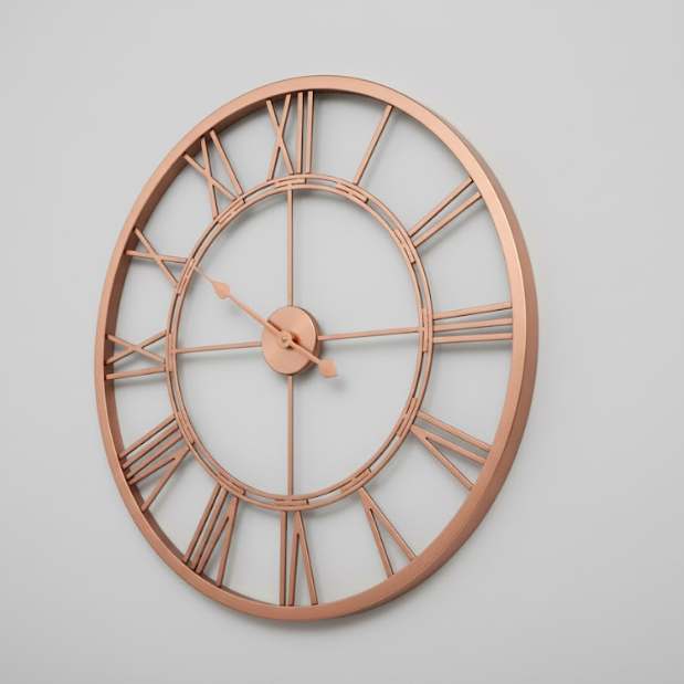 Roman Halo Open-Frame Wall Clock – Copper Finish (24" x 24")