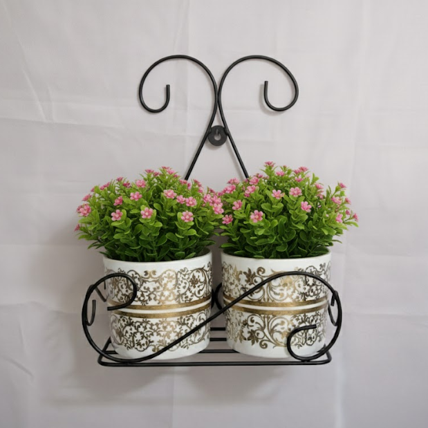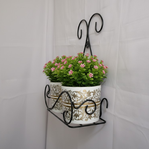 Transform your vertical spaces with this elegant high-quality steel wall hanging planter set, featuring beautiful scrollwork and versatile display options. The stand measures 29 cm in length, 14 cm in breadth, and 34 cm in height, engineered to securely hold two steel pots (each 11 cm high and 13 cm in diameter). Choose the full set for striking displays of greenery or opt for just the stylish scroll stand—ideal for balconies, patios, or entryways. The complete set is available at Rs. 400 per piece, and the stand alone for Rs. 240 per piece.