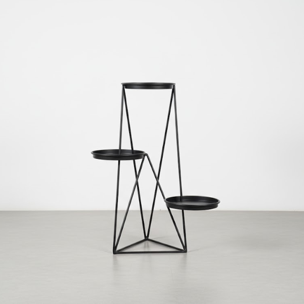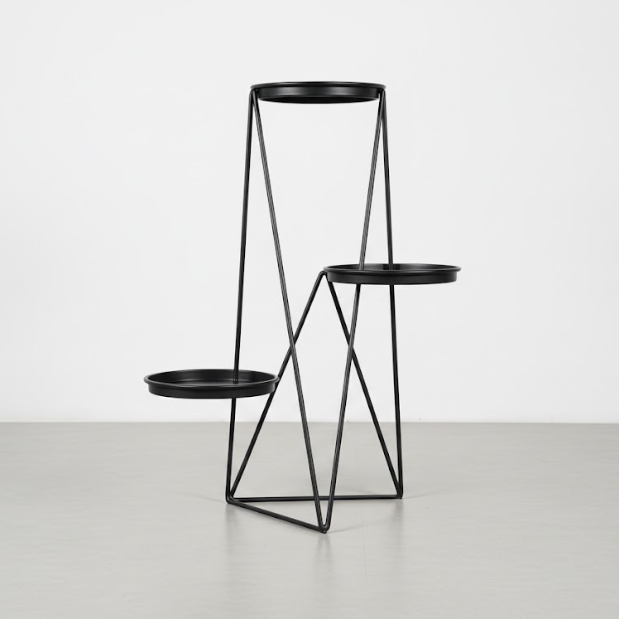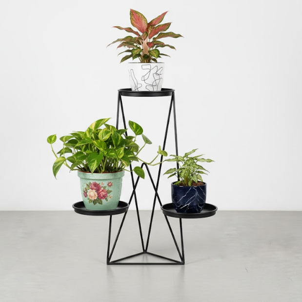 Showcase your favorite plants in style with the Steel 3-Tier Designer Pot Stand. Expertly crafted from high-quality steel, this stand boasts a geometric design that adds a modern touch to any indoor or outdoor setting. It comes with three decorative pots included, making it a complete and attractive solution for space-saving plant display. With a height of 55 cm, length of 21 cm, and width of 47 cm, the stand is compact yet spacious enough to accommodate a variety of plant types, offering sturdy support and lasting durability. Perfect for living rooms, balconies, or patios, it elevates your greenery and enhances your home decor