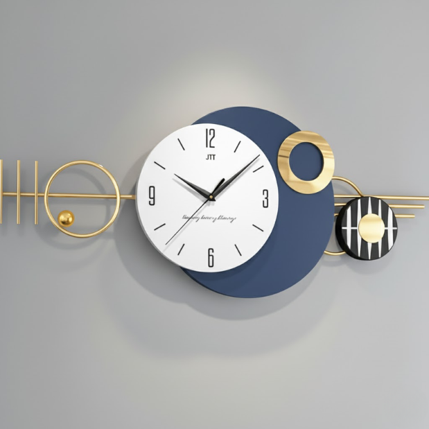 The Woodland Crest Deer Landscape Clock in gold finish measures 42" x 18" and features a scenic deer and forest landscape motif. Its elongated frame complements rustic and nature-inspired interiors. Equipped with a silent quartz movement, this clock serves both as art and a functional timepiece.